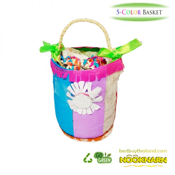 ตะกร้าเข็มกลัดดักแด้ 5 สี มีเหรียญสิริมงคล (โบว์แดง)