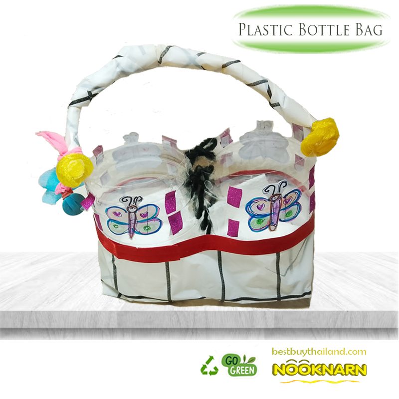 วัสดุ: ขวดพลาสติก, ผ้า, เชือก